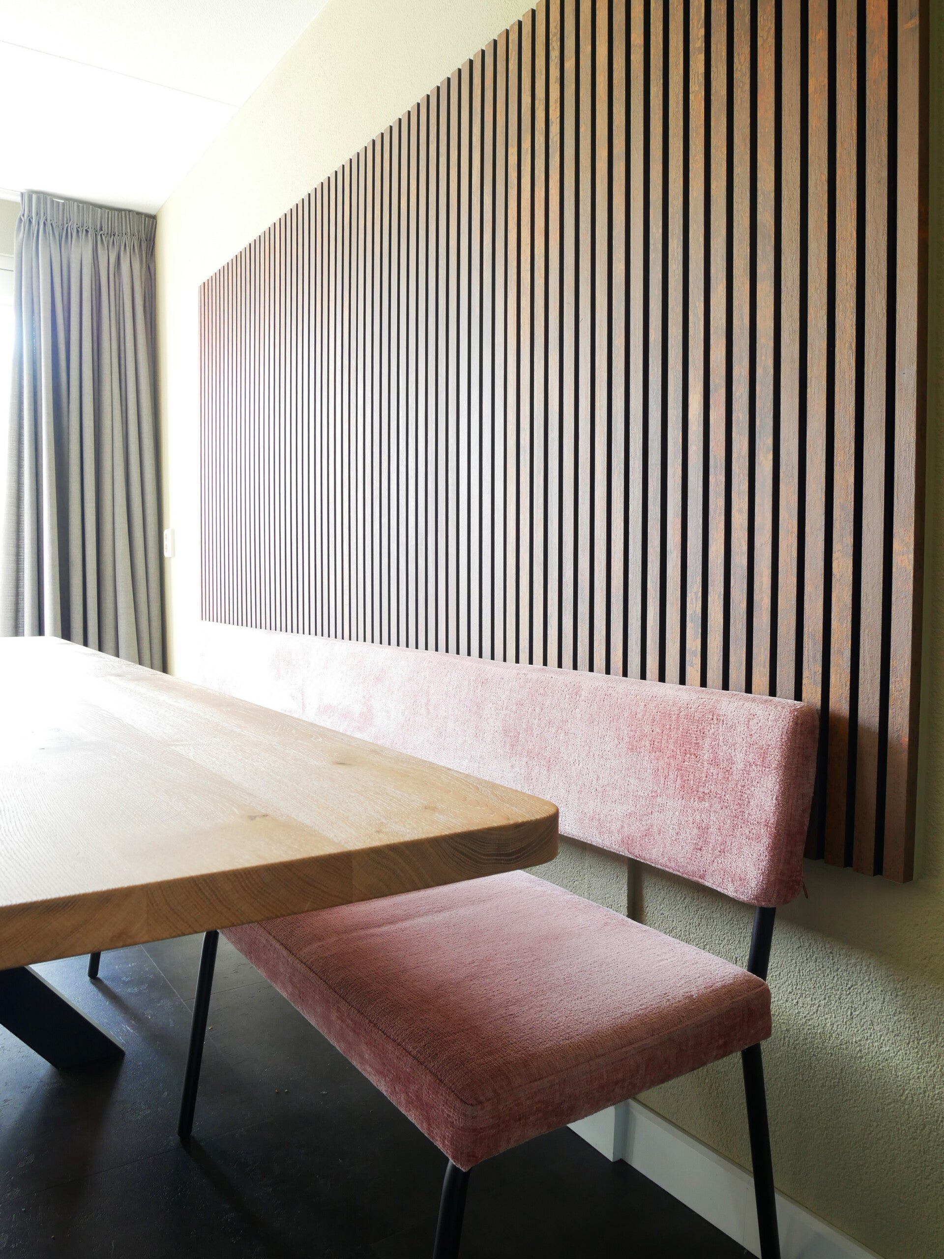 Zowel de zithoek, de keuken en de eethoek zijn met elkaar verbonden. Precies wat we graag wilden. Maar nu in de juiste proporties. Wij wisten niet hoe groot alles zou moeten in een ruimte van 100m2. Of juist hoe klein. Maar doordat Susan gekeken, geluisterd en gemeten heeft, heeft zij ons ontzettend geholpen. Susan luisterde naar onze ideeën en smaak. Stelde echt de juiste vragen. Ook de vragen die je niet verwacht. Zoals “Durf je een uitdaging aan te gaan in je interieur?” Of “Welke kleur zou je echt niet willen zien.” Ze laat je echt nadenken. Met haar sfeerkaartjes, creëerde zij met ons een moodboard. We hadden ook een Individuele opdracht. Zij voegde beide bij elkaar en werd het resultaat besproken. Echt super! Susan heeft over veel dingen al nagedacht. Alles is beschreven, uitgewerkt en voorgekauwd. Echt super fijn! Ook het tijdspad waarin zij het hele plan al klaar had, was super snel. Zij presenteerde haar plan en voor ons gevoel klopte het helemaal. Het voelde alsof wij er zo in konden springen om te gaan wonen. Dank je wel, Susan!'