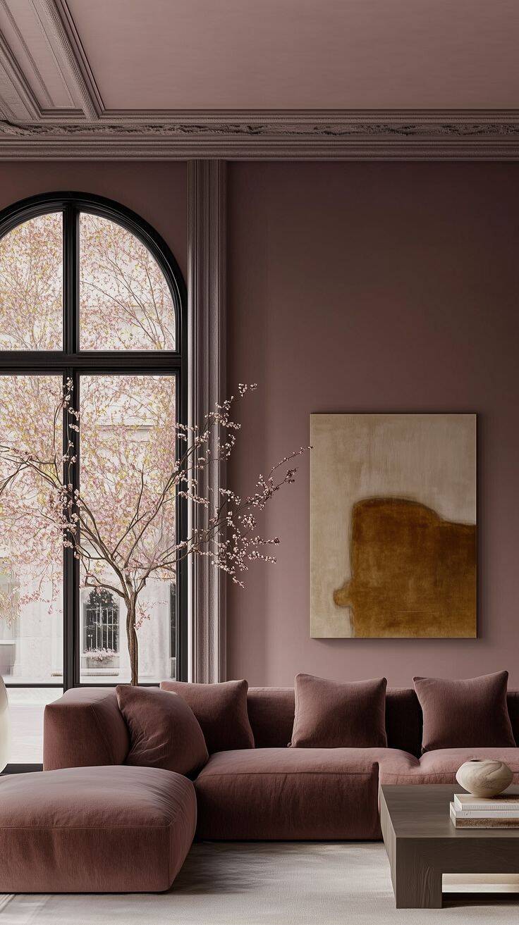 Gebruik een lichte basiskleur op de muur (bijv. poederroze) en voeg donkerdere meubels of accenten toe in oudroze of wijnrood.