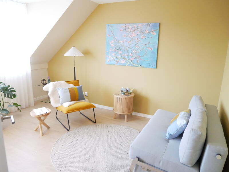 'Susan ging in haar advies voor ons interieur voortvarend te werk. We wilden meer kleur want alles was te wit. We zagen zelf niet hoe we dat konden bewerkstellingen. Susan observeerde ons intererieur en zag welke kleuren we gebruikten in onze meubels en in mijn schilderijen. Ze vroeg of we het avontuur wilden aangaan en dat hebben we gedaan. Alles heeft een kleur gekregen, niets werd overgeslagen. Haar advies was voor de muren, verlichting, kleur van de meubels en kussens. We vonden het heel spannend vooral omdat we zelf alles hebben geschilderd en meteen zagen en voelden wat het resultaat was. Het is heel goed gelukt. Alle kleuren matchen met elkaar en mijn schilderijen komen prachtig uit op de groene, gele en pinkpeach muren. Susan is een prettige verschijning met een inspirerende kijk en een fijn persoon om zaken mee te doen. Probeer het ook eens, je zult versteld staan!'
