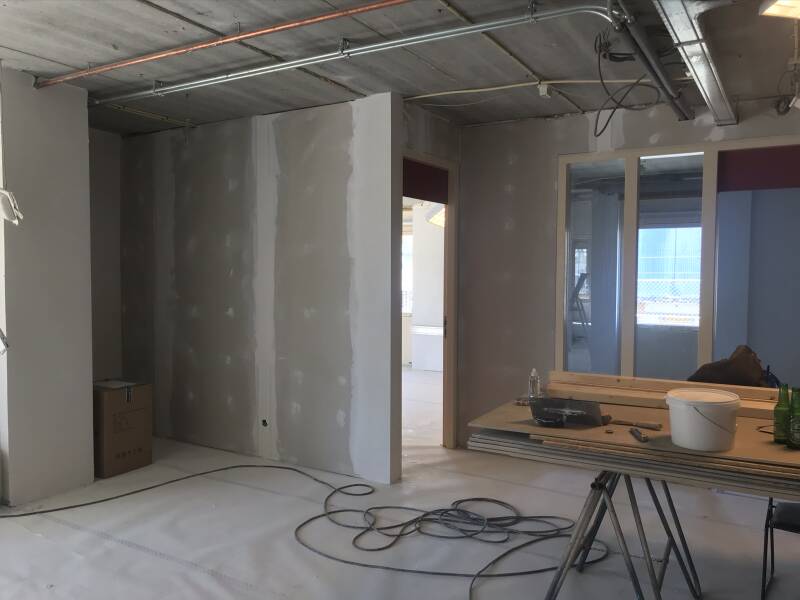 De eigenaar kocht dit pand voor zijn orthopedie bedrijf en om ruimte te verhuren aan derden maar er moest fors verbouwd worden. Hij schakelde mijn hulp in voor het kleurenplan, de inrichting van de wachtkamer, het uitzoeken van meubels en ideeën voor het plafond. De klant wilde een stoere, industriële sfeer en dat werd het! Missie geslaagd :-)